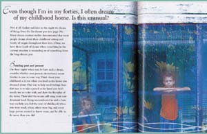 unusual? Blending past and present. On those nights when you do have such a dream, consider whether your present circumstance seems familiar to you in some way. Think about your childhood as it was when you lived in the house you dreamed about. One way to remember feelings from that time is to take a pencil in the hand you don't usually use to write with, and draw the floorplan of that house. Then label the rooms, still using your non-dominant hand! Feeling uncoordinated in such a basic way can help you find the state of childhood, when you were small, others were big, and every big person seemed to know more, and be able to do more, than you did. Remember, too, that dreams are really about feelings. We can get caught up in intellectually interpreting our dreams and ignore the emotional state they express or portray. How did you feel in your dream? Is that feeling familiar to you? Remodeling your psyche. Sometimes, you may dream of yourself exploring your own childhood home as an adult, and discovering new rooms. The house has been remodeled! This is a common dream of people in psychotherapy. As you'll see in the last half of this book, houses can represent the psyche, and effective therapy can spark a remodeling job within it. As we mature and rely less on the coping strategies we used in childhood, our inner house can reflect that change. Our dreams can blend the childhood home with our current home to represent the very real situation within our own minds: some things have changed, some things have remained the same.